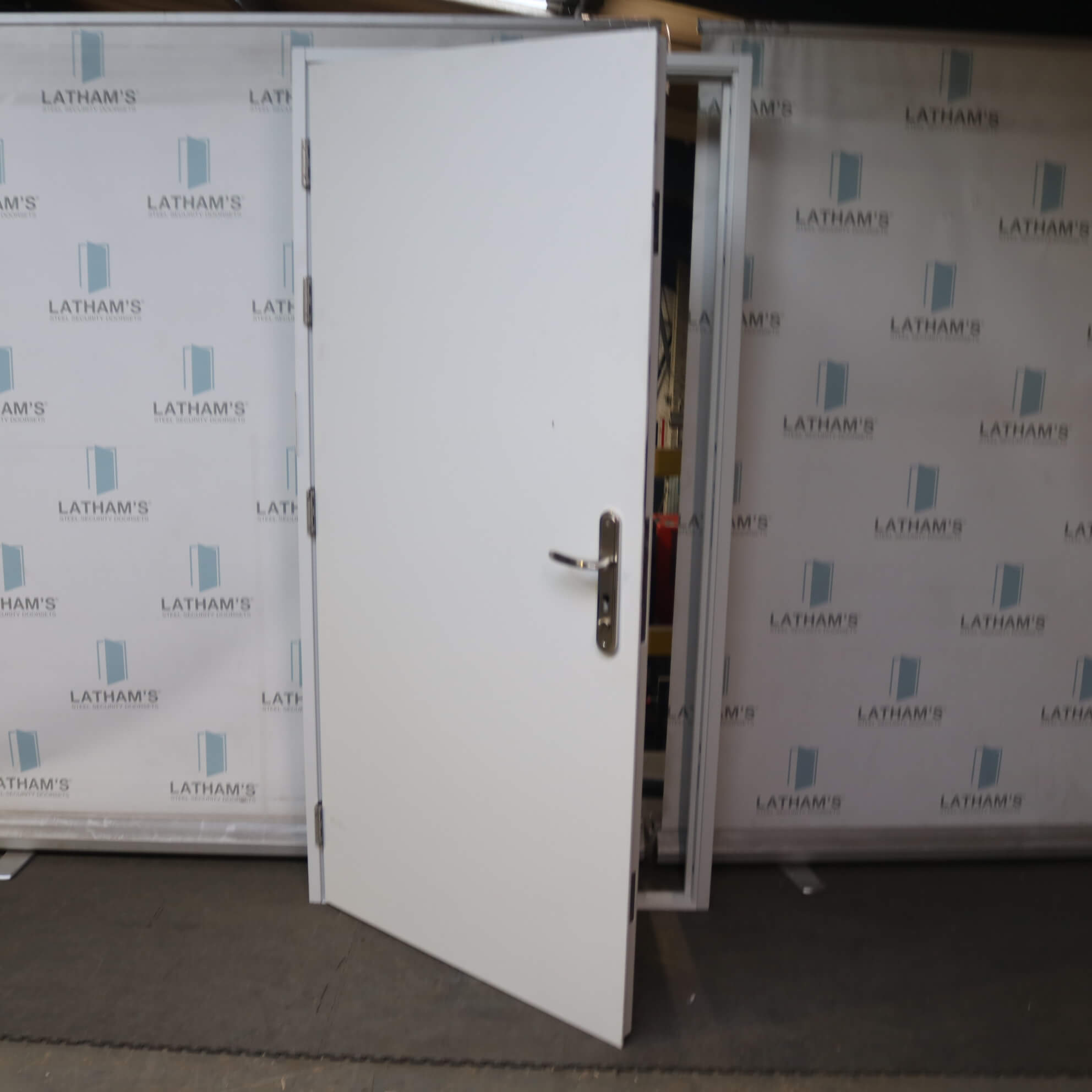 Security Steel Door | 995mm x 2020mm | Latham’s White | LH OUT/RH IN