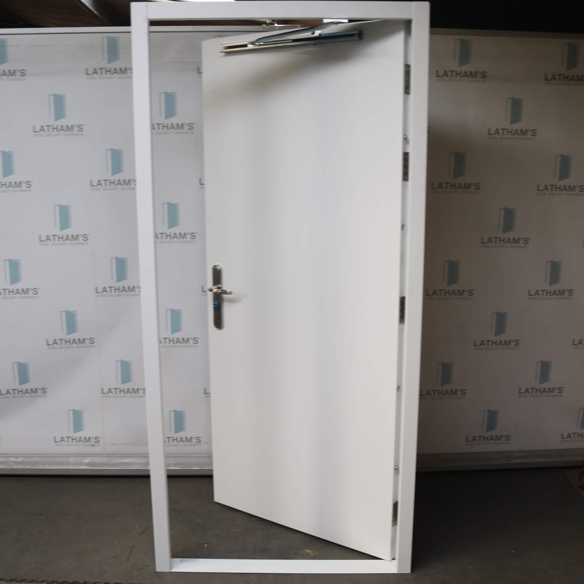 Security Steel Door | 990mm x 2095mm | Latham’s White | LH OUT/RH IN