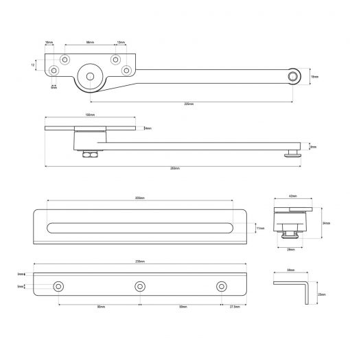 | Dimensions | 229mm from the centre of the arm |