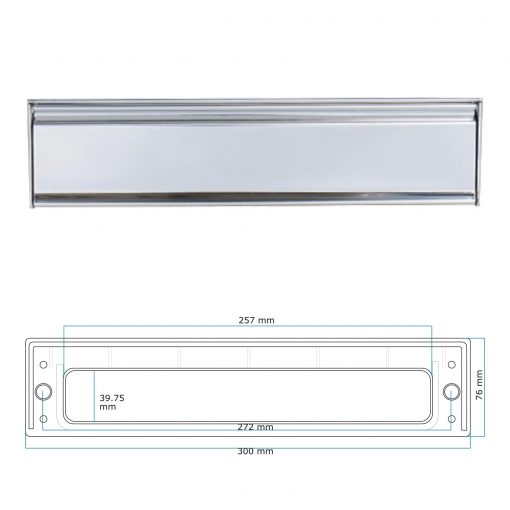 This letterplate also features blind bolts to the exterior and is made from 316 grade stainless steel. Available in chrome and satin chrome finishes. Price quoted is for separate item and does not include fitting.